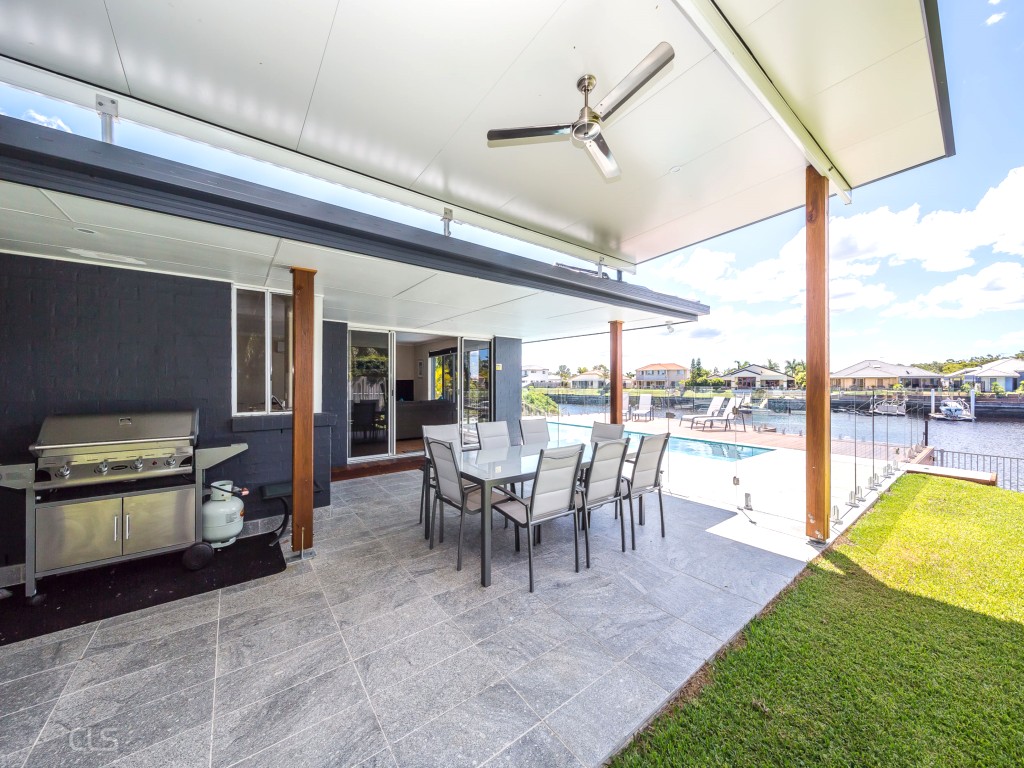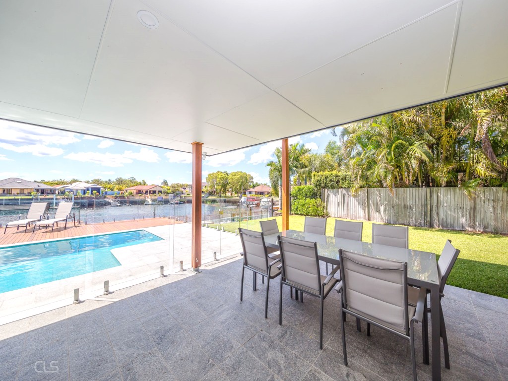This stunning canal home is located in the up market suburb of Banksia Beach on beautiful Bribie Island. This home has the perfect outdoor entertaining area for the family to enjoy while you are on holiday. The outdoor entertaining area is wrapped around the featured in ground swimming pool overlooking the gorgeous canal. It has a spacious covered area with an 8seater table and BBQ for you to enjoy a home cooked meal. There is plenty of comfortable outdoor seating for you to enjoy around the swimming pool. Pop the boat in the water and moor it to the pontoon right at your door step.