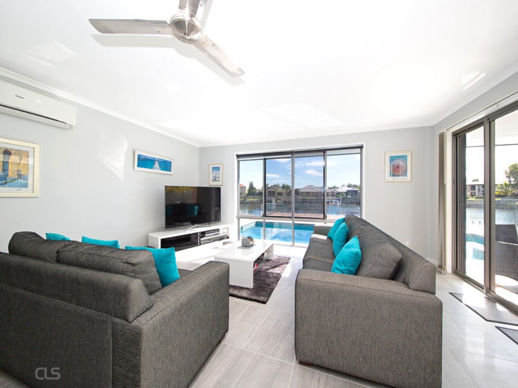 When you are not enjoying the perfect outdoor entertaining area there is plenty of space to relax inside. This property is all about enjoying the finer things in life! Enjoy the two large living areas with comfortable sofas and large 60inch flat screen TVs and views over the swimming pool and canal. The kitchen is equipped with everything one could need and features stainless steel appliances.