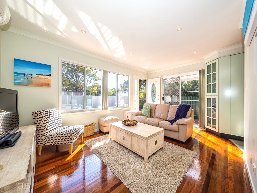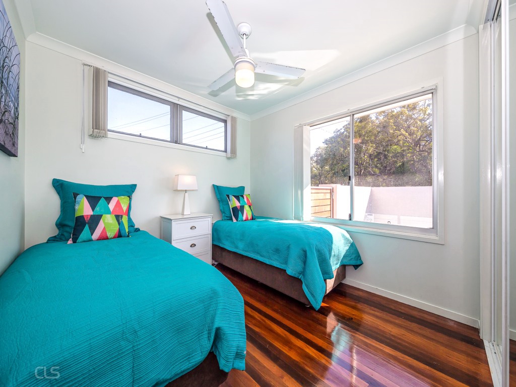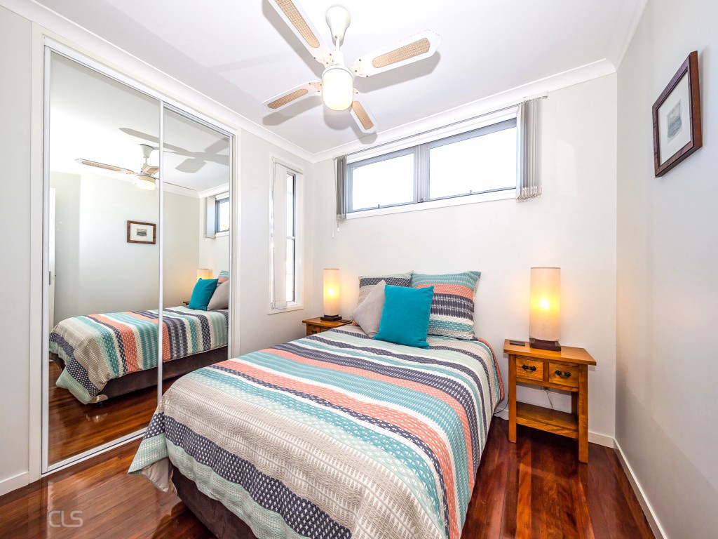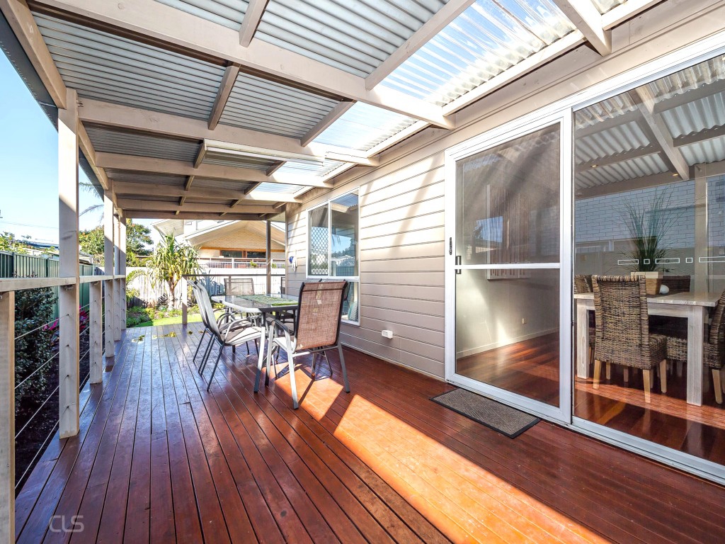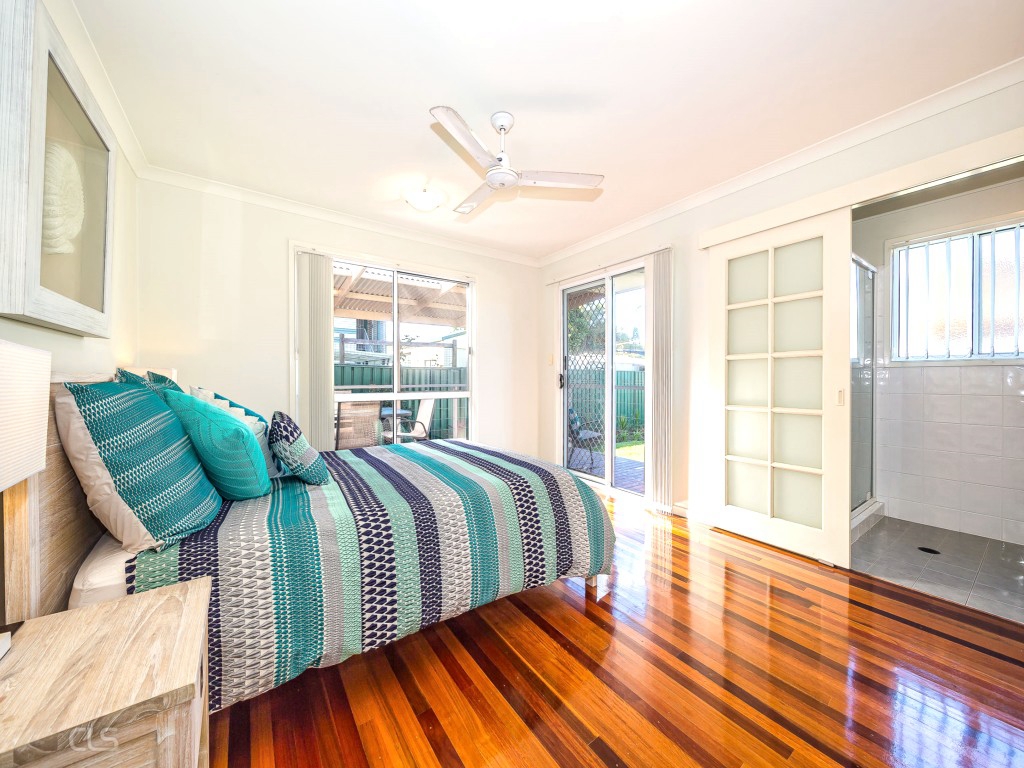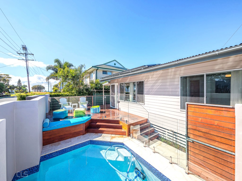 This 3 bedroom air conditioned house is located only minutes walk to Woorim beach. It has a large veranda that wraps around half the house and surrounds the beauitful plunge pool where you can enjoy the sounds of the ocean and partical water views. The lounge room has a flat screen TV and comfortable seating. The fully equipped kitchen overlooks the eight seater dining room. All three bedrooms have ceiling fans and built in wardrobes. There are two bathrooms including one ensuite, both complete with shower, toilet & vanity and the main with a large bath tub. It is the perfect spot to catch the afternoon breeze. This house is fully fenced and pet friendly for your small well behaved outside dog and only a short walk away are all the cafes, clubs & shops in Woorim including the patrolled surf beach.