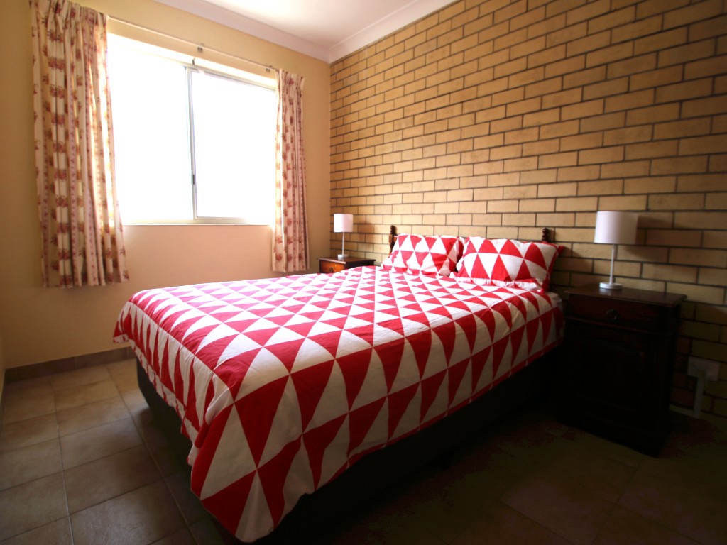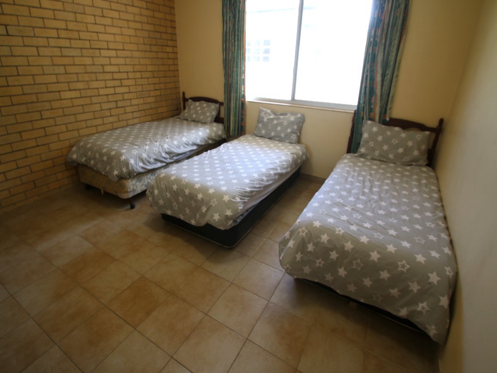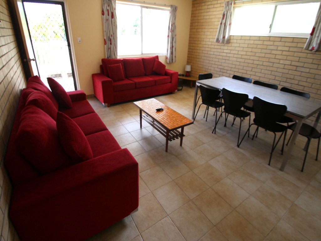 The master bedroom has a comfortable queen bed, built in wardrobe and seated mirror area. The second bedroom has three single beds and that too has a built in wardrobe and seated mirror area. Both rooms have ceiling fans and the unit has fly screens throughout.