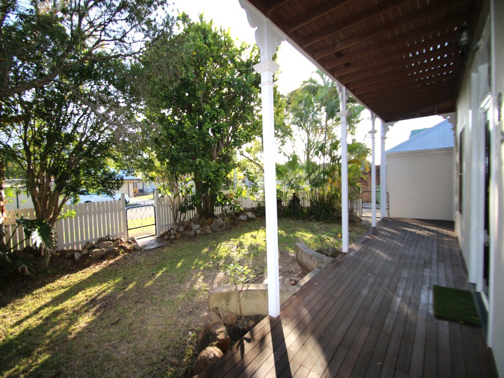 Outside there is a massive poinciana tree in the back garden together with a wood fired BBQ and tables and chairs for al fresco dining. Long sweeping verandahs upstairs and downstairs give this home a wonderful feeling of space and grandeur. The house catches the breezes and is refreshingly cool for those warmer summer months. The yard is fully fence (front and back) so is perfect for the kids and the dog to play.