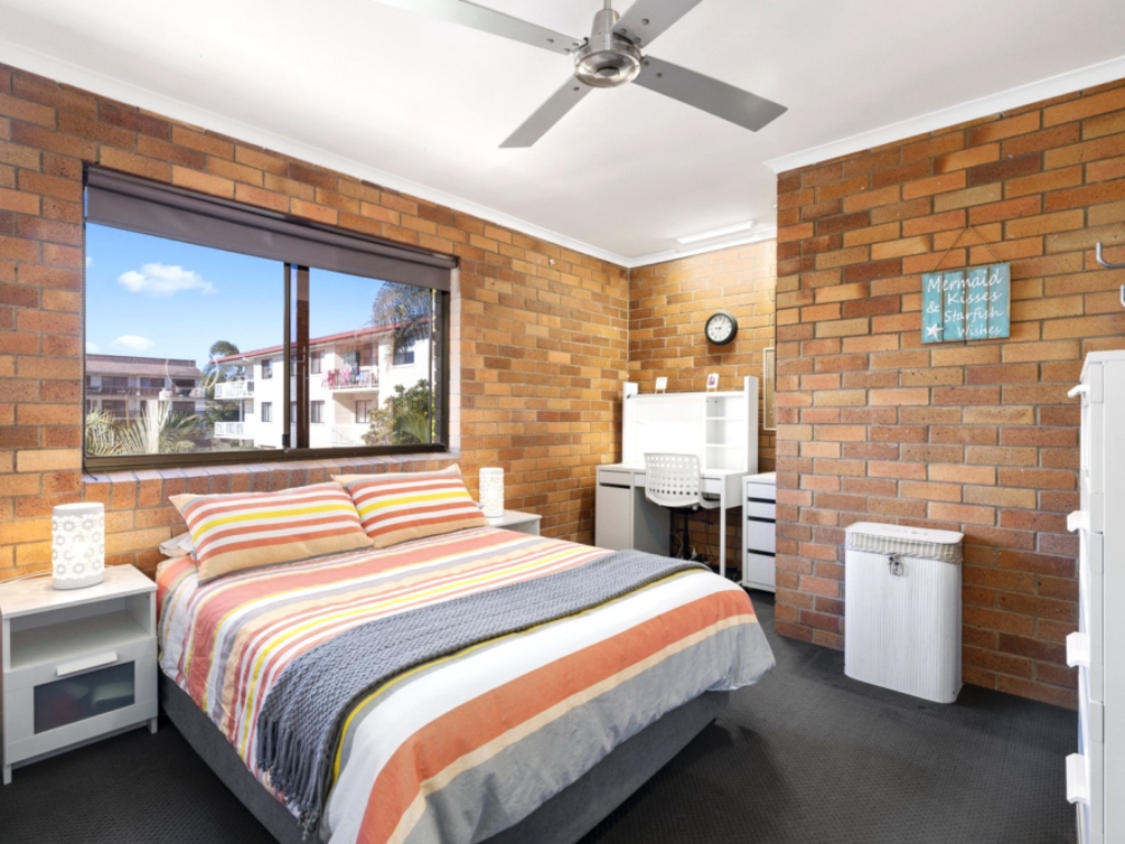 Up the internal set of stairs is the main living room with air conditioning, a large L shaped sofa, flat screen TV, dining room table with seating for four and the kitchen all in an open plan setting. Along the entire side of the living room is a balcony with seating where you can enjoy the sound of the waves rolling on to the shore. Both bedrooms upstairs have queen size beds ceiling fans and built in robes. They share access to the main bathroom which has a shower, vanity and toilet.