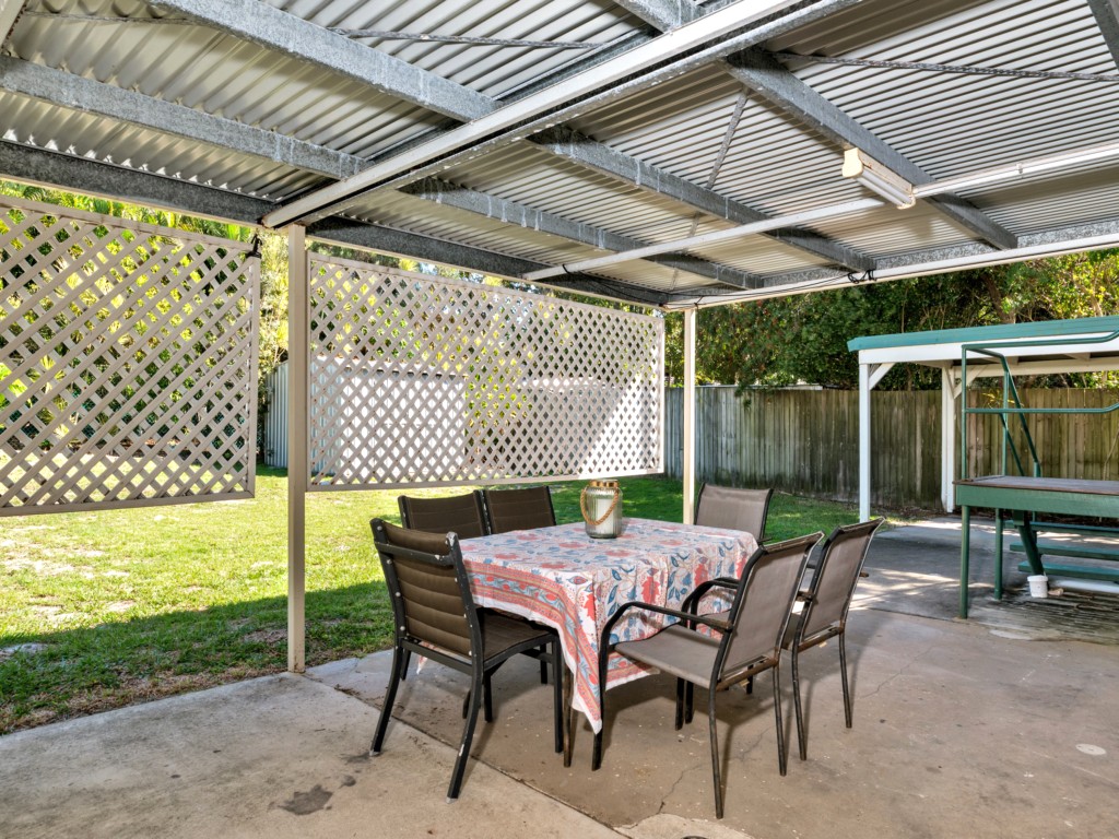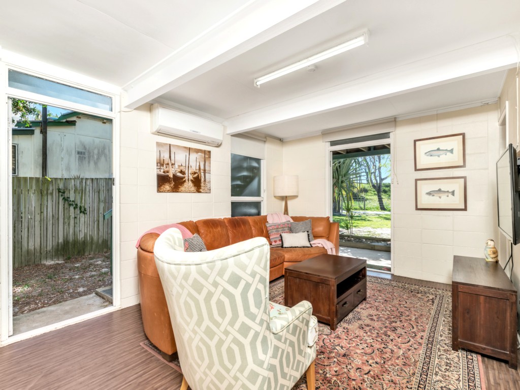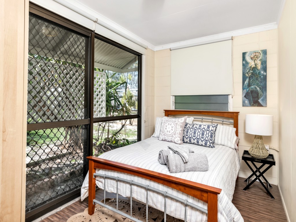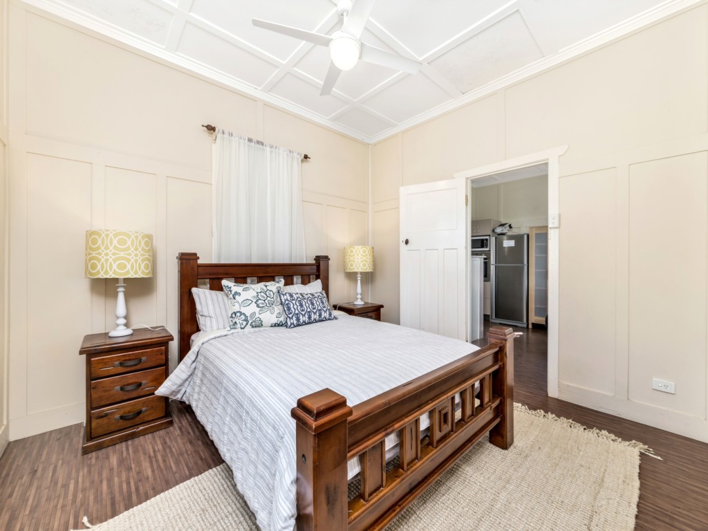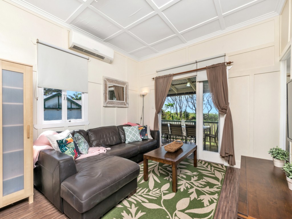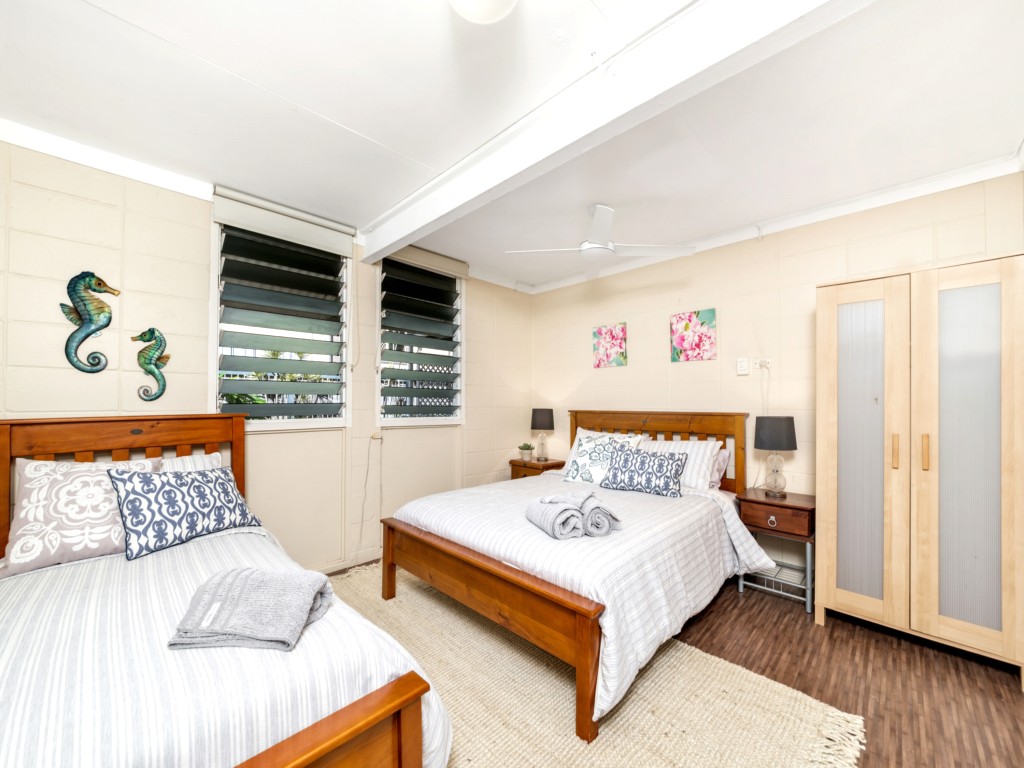 Located on sought after Rickman Parade, this beautiful 2 storey Queenslander is ideal for a relaxing holiday by the beach. You can bring your well behaved dog along too! On the ground floor you will find an air-conditioned living area with comfortable seating, a large flat screen TV & DVD Player. One bedroom has a double bed and the 2nd bedroom on the ground level boasts a queen size bed as well as a single bed. There is a bathroom and combined laundry with a shower, toilet, tub, washing machine & dryer. There is an undercover pergola with an outdoor setting for 6 and a BBQ.