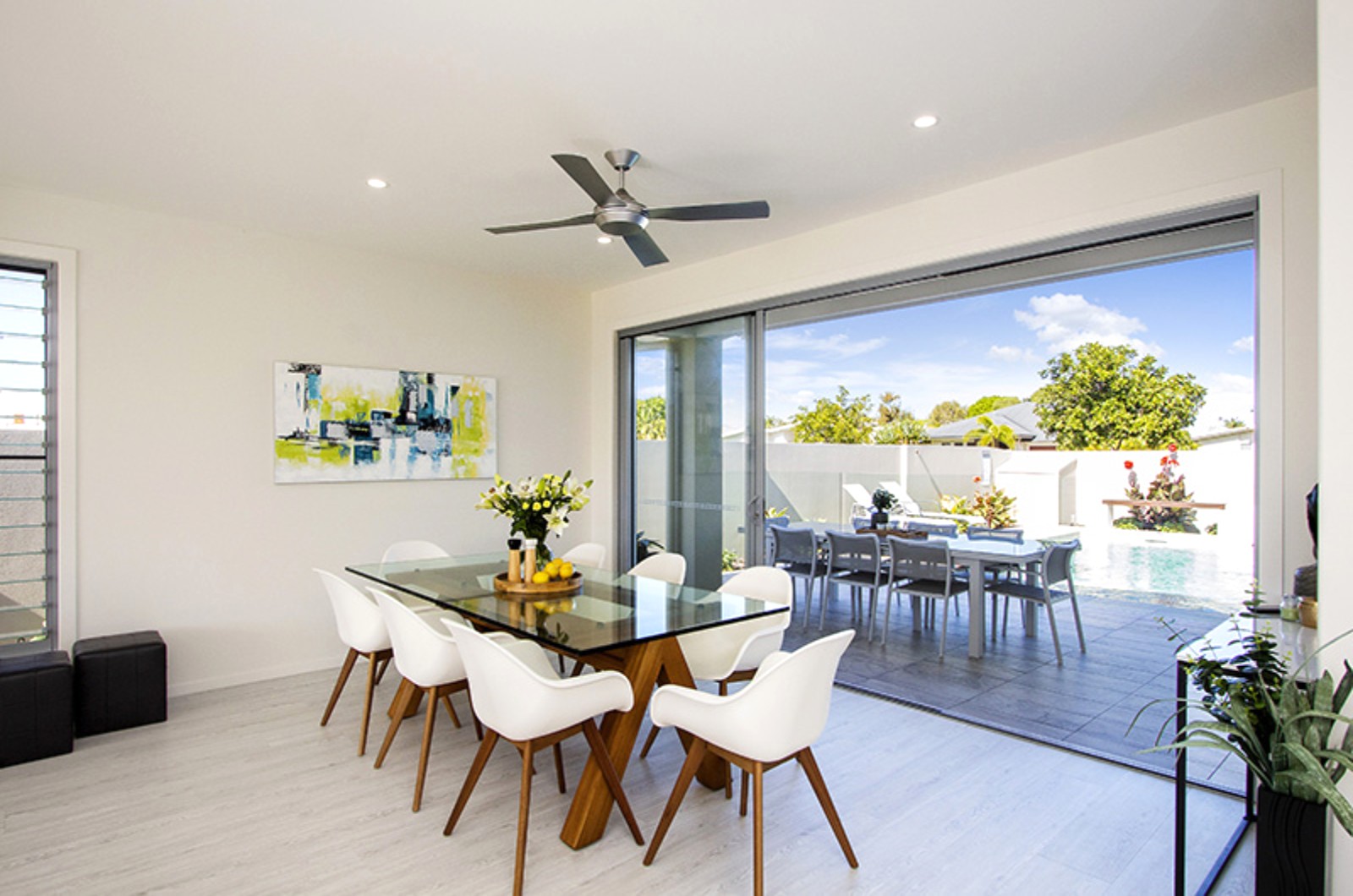 Outdoor living overlooking pool at the front & waterfront to the rear.